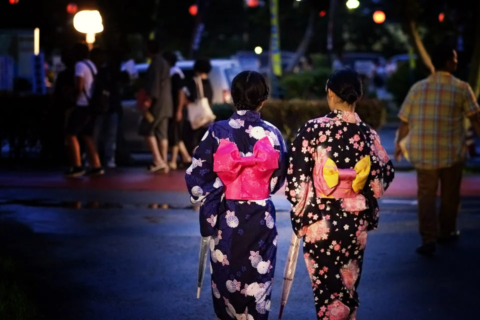 Kimonos are one of those parts of Japan that I love. Unfortunately, these days you don't see them as much. However, in the summer Japanese women, and men break out their Yukatas, a lighter, cooler version of the kimono worn during the warmer summer months. I took this photo below at a local festival in Okinawa City. The sun had just set and it was almost dark outside, making this one of those situations where I was glad I had my Fuji 56mm (85mm equivalent) f/1.2 lens on my XPro1. Being able to shoot this at f/2.0 allowed me to get enough light to make the shot.